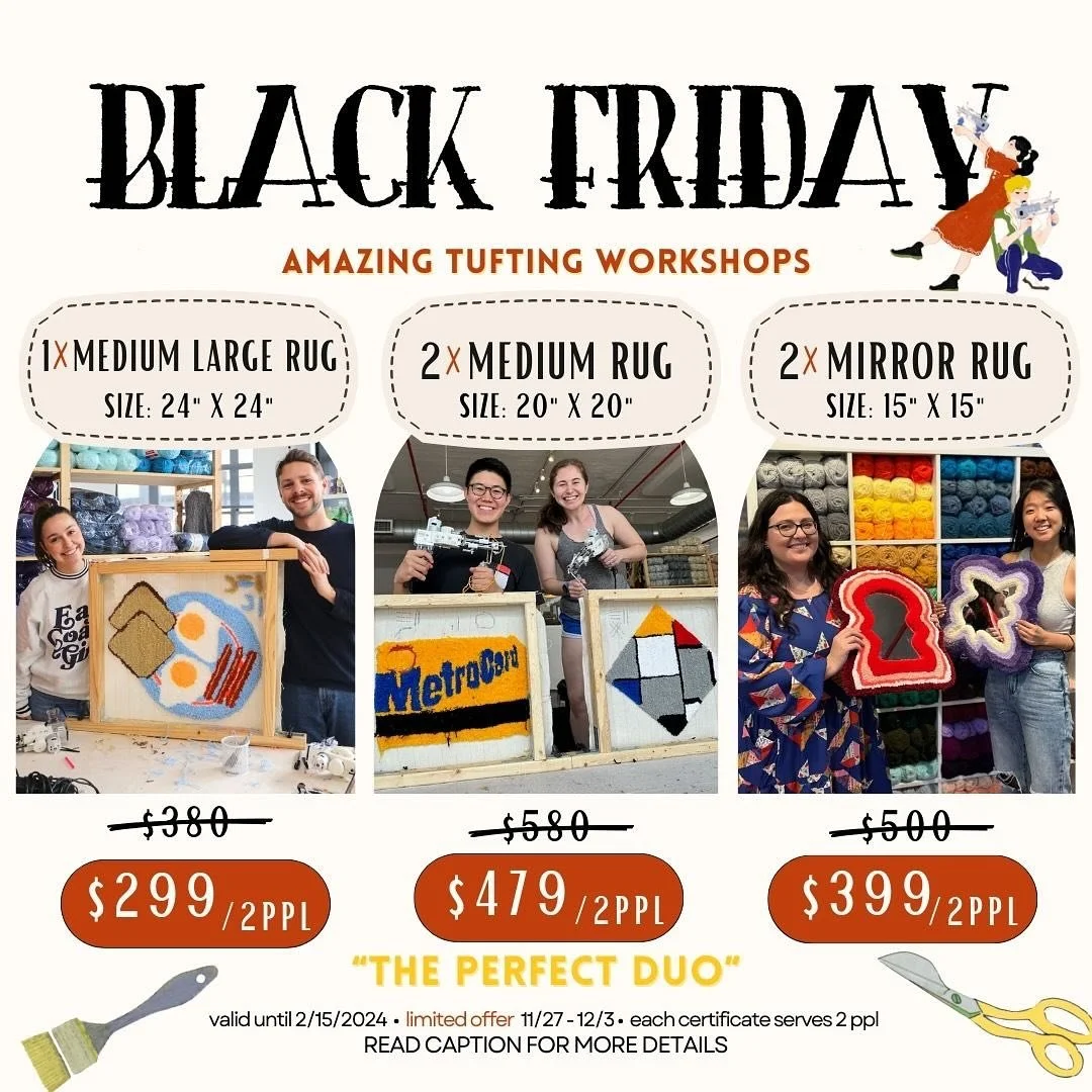 Studio has tufting workshops, customized products and open studio passes (day, week and month).